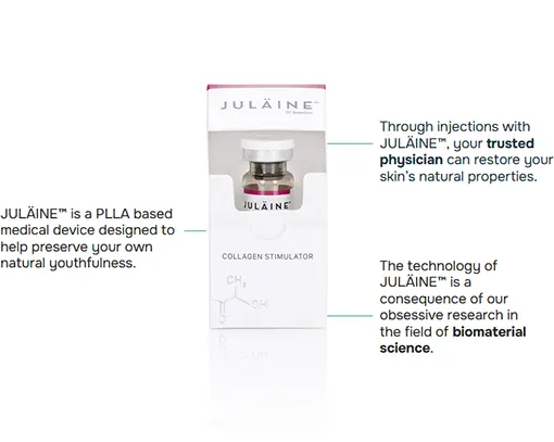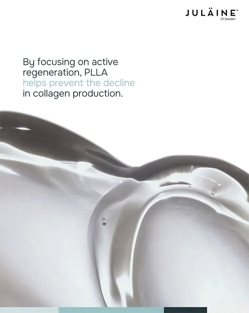 At the core of JULÄINE™ is poly-L-lactic acid (PLLA). This biocompatible and biodegradable biomaterial has been studied for its ability to increase collagen gene expression in fibroblasts and remodel the dermis in a controlled and long-lasting manner. JULÄINE™ harnesses this science through proprietary LaSynPro™ technology, producing highly uniform microspheres designed to integrate smoothly with skin tissues after injection. Once in place, these microspheres stimulate new collagen formation. They then gradually degrade and are naturally absorbed, leaving behind a healthier, stronger collagen framework that improves tone, texture and firmness.